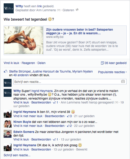 De reactie van mijn kinderen? Die willen maar één ding en dat is dat ik gelukkig ben! Ze vinden het een leuke man en geven er verder geen commentaar op. Mijn ouders en broer doen alsof ik nog alleen ben. Héél sporadisch valt zijn naam of wordt er gevraagd of “hij” mee gaat naar de Ardennen. Ik had iedereen uitgenodigd met Kerst maar het nieuws van een “mystery guest” werd maar lauw onthaald. Ik vind het jammer. Ik ben 51 en kan wel voor mezelf beslissen.